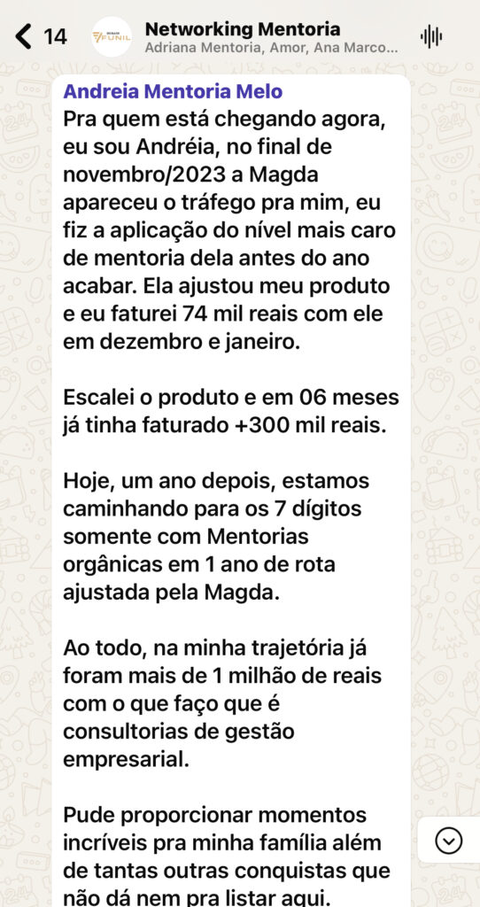 “Faturou mais de R$100MIL reais com programas de mentorias”
