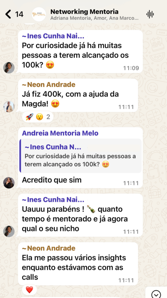 “Aqui sinto que não é só mais uma mentoria, sinto que tenho ajuda e apoio necessário de forma prática e simples. As suas chineladas são as melhores para te colocar no eixo.”“